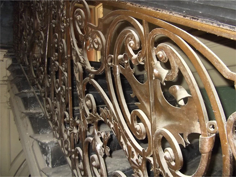 mit schmiedeeiserner Geländerfüllung